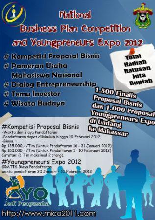 - Panitia akan menyurat ke pimpinan kampus masing-masing peserta yang proposalnya masuk kategori 1.450 ide dan prospek usaha terbaik, dan meminta kerjasama dengan pimpinan kampus tersebut untuk membantu memfasilitasi mahasiswanya selaku finalis untuk mengikuti persentasi di depan dewan juri di Universitas Hasanuddin, Makassar Sulawesi Selatan.